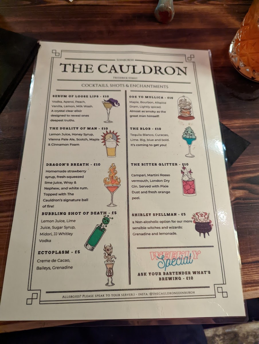 Welcome to The Cauldron Edinburgh, an enchanting venue where magic meets mixology. Located at 57a Frederick St, this immersive experience allows guests to dive into the whimsical world of potion-making. Imagine donning your robes and wielding a wand as you craft your own cocktails!